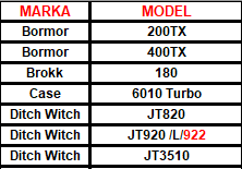 Tabela poniżej przedstawia zastosowanie gąsienic gumowych o wymiarach 230/72/56 w różnych modelach koparek.