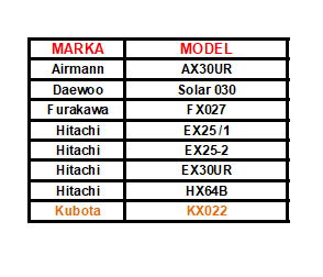 Tabela poniżej przedstawia zastosowanie gąsienic gumowych o wymiarach 300/52,5N/76 w różnych modelach koparek.
