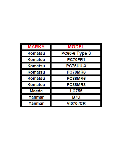 Tabela poniżej przedstawia zastosowanie gąsienic gumowych o wymiarach 450/83,5/74K w różnych modelach koparek.